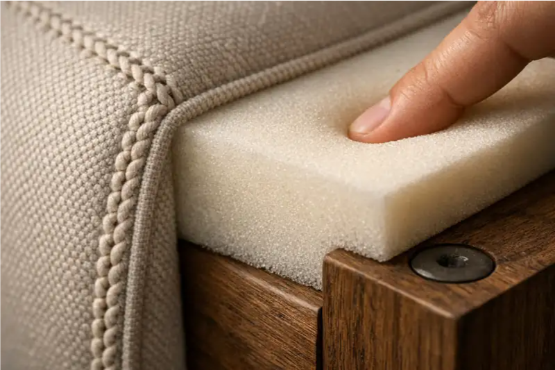 Una espuma de baja densidad puede resultar cómoda al principio, pero con el uso pierde forma y se hunde. Los sofás de calidad utilizan espumas de mayor densidad, capaces de mantener su firmeza durante más tiempo.